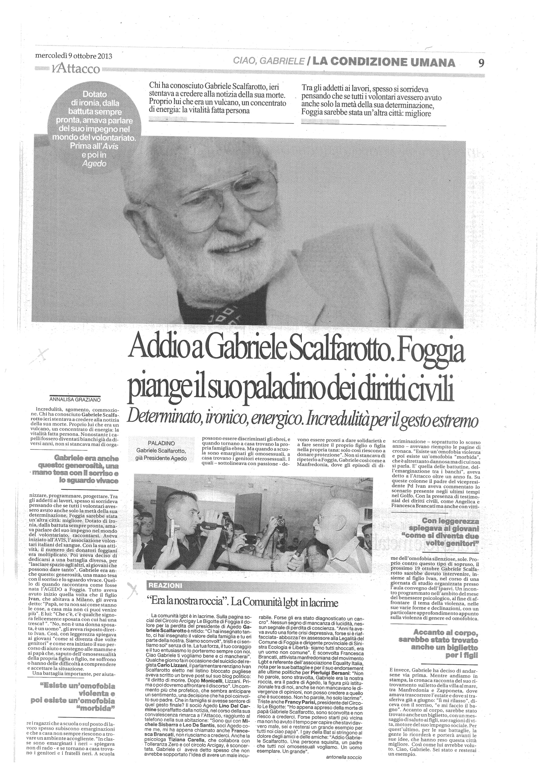 Il lungo articolo con cui il giornale di Foggia “L’Attacco” ha ricordato Gabriele. Grazie ad Annalisa Graziano per averlo scritto e a Piero Paciello, il direttore del giornale, per averlo pubblicato.