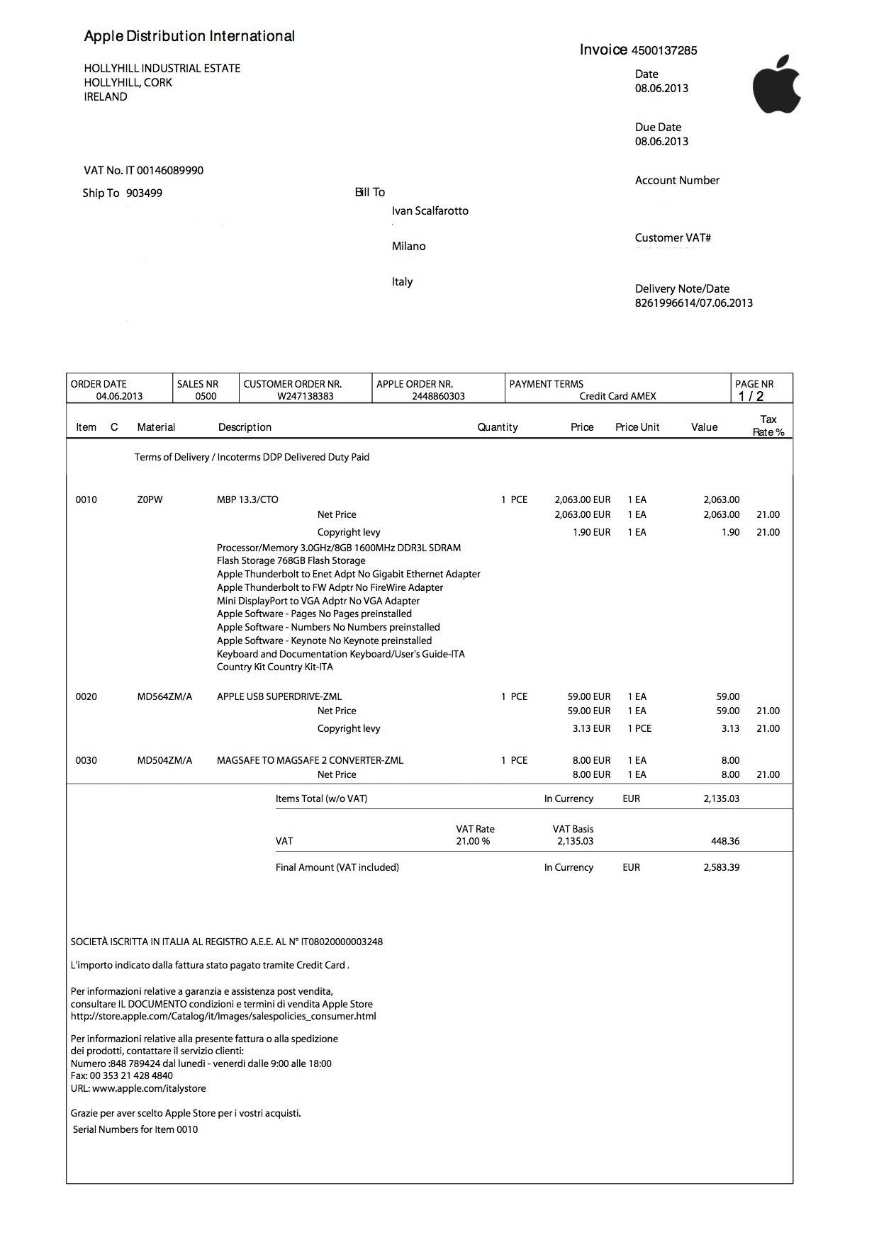 5. La Camera paga, per una sola volta durante il mandato, 2500 euro per l’acquisto di nuovi materiali elettronici. Con questi soldi a giugno ho comprato un Macbook Pro 13 pollici che ho pagato 2583,39 euro (fattura allegata nel terzo file).