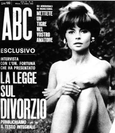 Nel 1974 il referendum sul divorzio lo si vinse anche all’appoggio della stampa: tipo le campagne di ABC, un settimanale anticonformista, radicaleggiante e libertario (oggi qualcuno lo definirebbe “laicista”), che prese una posizione netta sull’argomento, come si vede dalla copertina qui sotto.